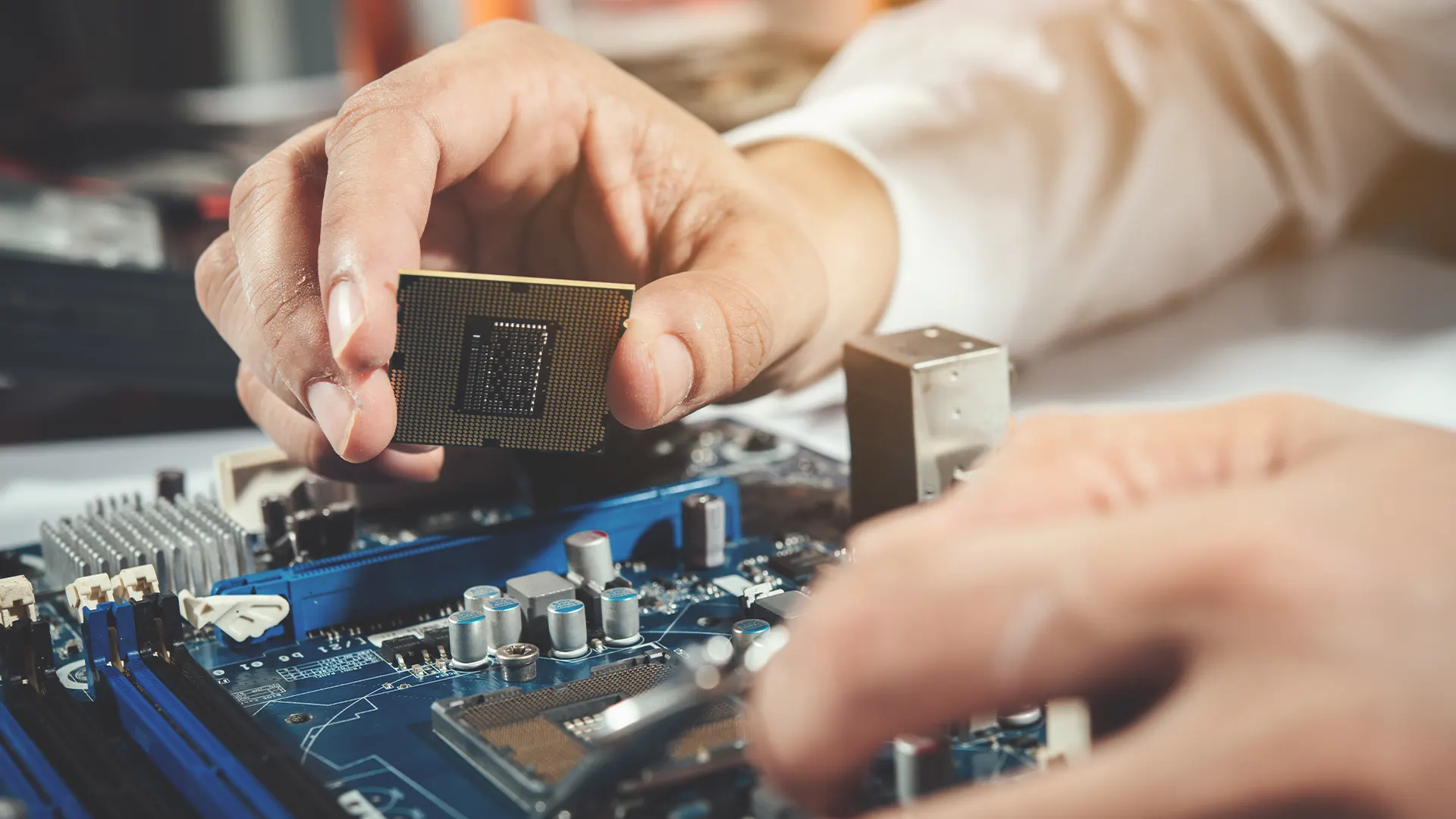 PC que reinicia no meio do jogo, apresenta tela azul, não dá vídeo ou travamentos com 100% de uso? Diagnosticamos GPU, CPU, placa-mãe, PSU e memória com ferramentas específicas para identificar a causa exata — sem chute.